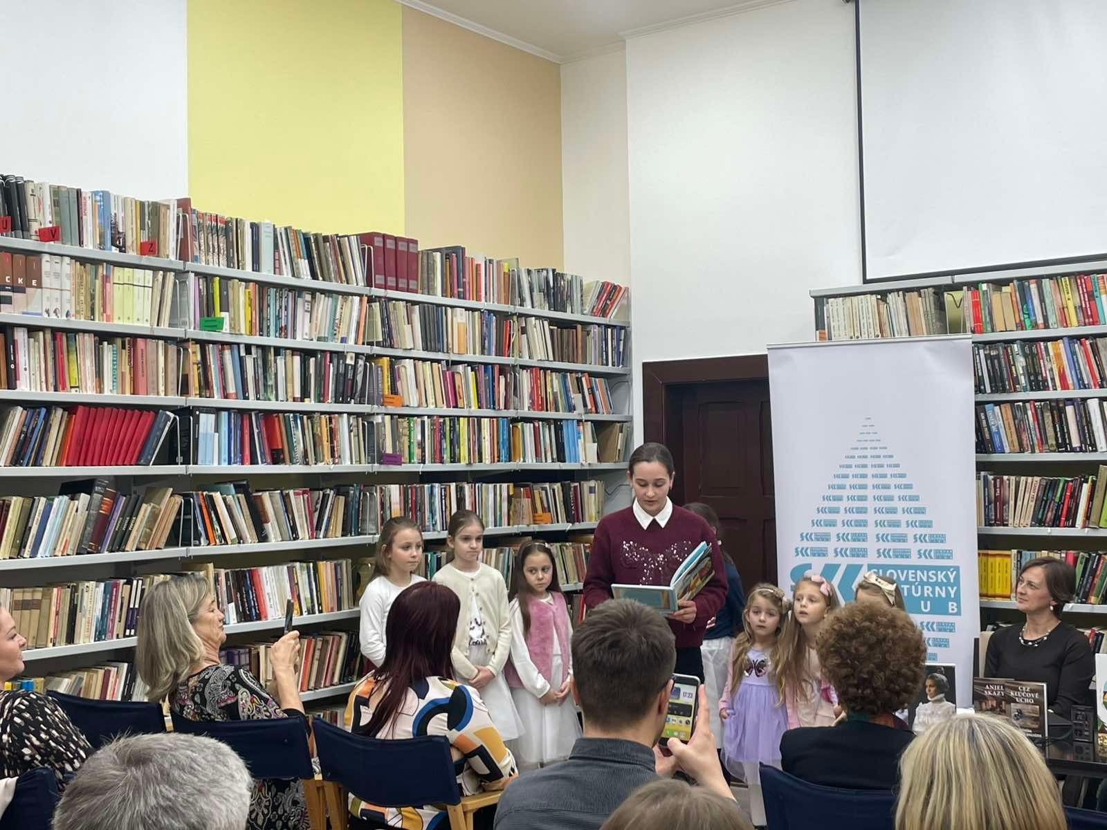 Program bol spestrený pesničkami detskej speváckej skupiny Perličky a texty z knihy Dobrodružstvá žaby Ľuby a bociana Jána interpétovali žiačky základnej školy Jána Čajaka Hana Víziová a Nina Častvenová.